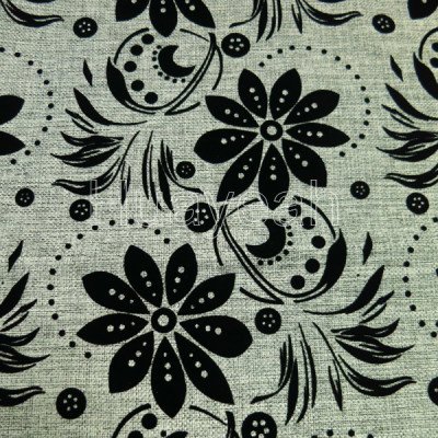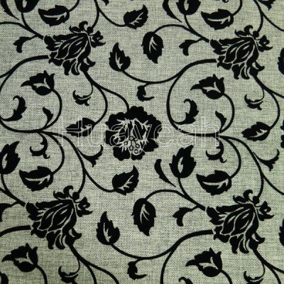 middle east flocking florals on linen look fabric